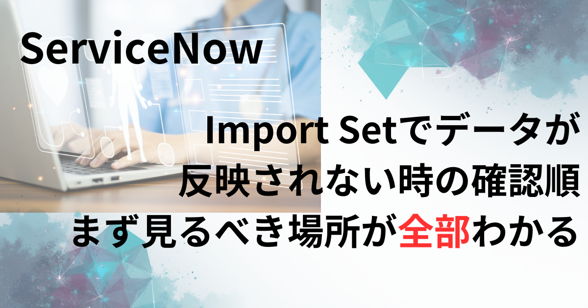 Import Setでデータが反映されない時は、いきなりTransform mapをいじるより、段階で切り分ける ほうが早く、安全です。