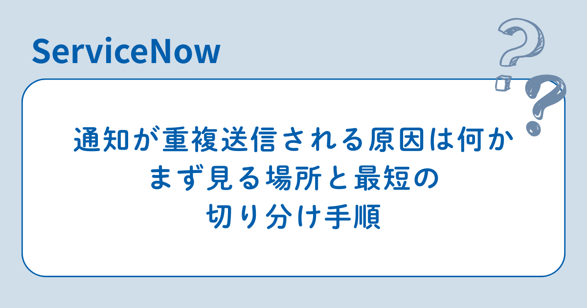 この記事では、ServiceNowで通知が重複送信されるときに、まず確認すべき場所、原因の全体構造、実務での切り分け順、そして再発防止の設計原則までまとめて整理します。